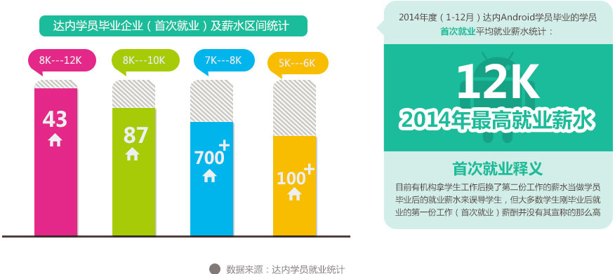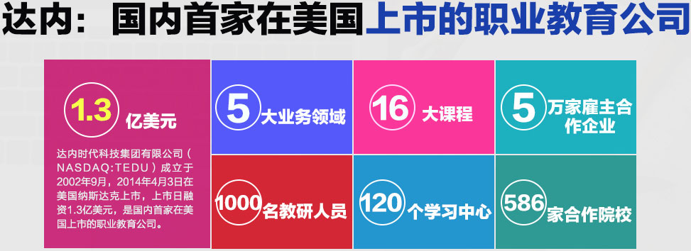 达内目前拥有5万多家雇主合作企业,具备深度合作的雇主企业达3224家,是目前行业内拥有就业合作雇主企业最多的品牌;