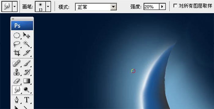 23、调整涂抹工具笔刷大小,然后在背景光上涂出发散光效果,如下图。