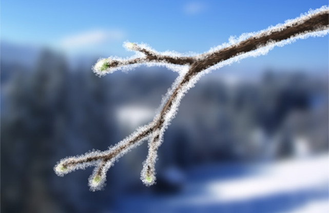 8、使用笔刷在你想覆盖冰霜的物体外缘涂抹。物体要大,而笔刷要小。