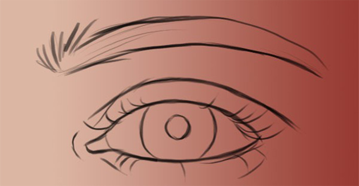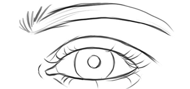 人类的眼睛结构和组成构造都是相似的:椭圆结构、两边尖削,有眼睑、眼睫和眉毛。很容易就能画出一只易辨认的眼睛,就像下面这幅图。