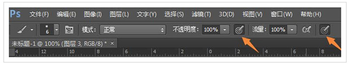 新建画布,将已有图层命名为“背景”,将前景色设置为#dcb6a3,背景色设置为#963931。使用渐变工具(G),设置为前景色到背景色渐变从左至右拖拉,创建出接近肤色的渐变图层。再使用画笔工具(B),使用硬圆笔刷,选择对“大小”和“不透明度”使用压力(译者按:找不到这两样的同学请看下面的示意图哦~),将前景色调整到#000000。