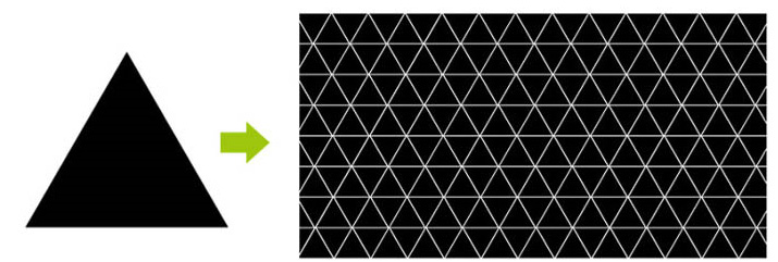 用形状工具画出一个三角形的形状(矢量),复制三角形做成一个面,将所有的形状层合并。
