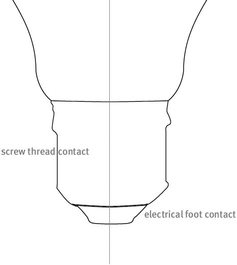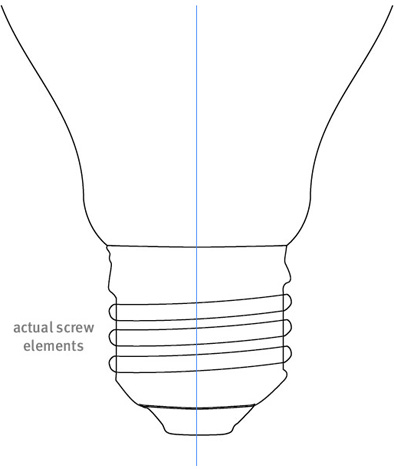 一个不完美的灯泡,对于我们是方便的,因为螺纹接触的左边和右边没有完全匹配。准备好钢笔工具开始绘图。当我们完成了这部分,我们继续快速在最底部绘制一个电气接触脚。这两个形状很简单,有点创意的造型,所以你不应该有任何问题,看一下我的轮廓是怎样重叠的,在这个汇合点上不要紧。