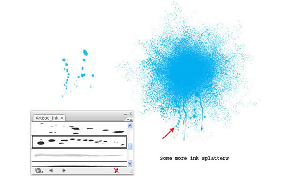 用铅笔工具 (N), 用墨水笔刷画出更多的线条和痕迹。你可以在窗口> 笔刷库> 艺术笔刷> 墨水笔刷 中找到。这里,我用的是墨水笔刷3。