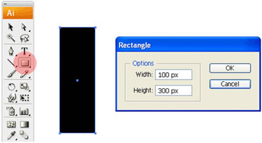 创建一个新文档,应用矩形工具(M)画一个100px * 300px 的方框,在里面填充你喜欢的颜色。在形状方面没有特别的要求。这个尺寸只是我应用的,以作参考。