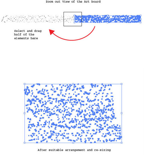 放大视图,查看整个的这些小形状。选择其中的一半,拖拽他们到另一半上面。重新把他们排列成一个正方形。 你可能要重新定义选择的这些元素的尺寸,以适合你的画布