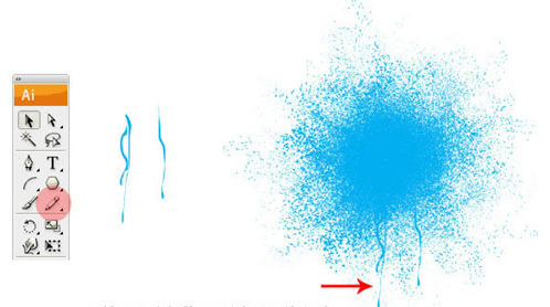 现在喷溅效果已经完成了。下一步,我们要添加一些流下来的墨水。用铅笔工具(N) 画一些流下来的墨水的大概形状。用很喷溅形状同样的颜色填充。