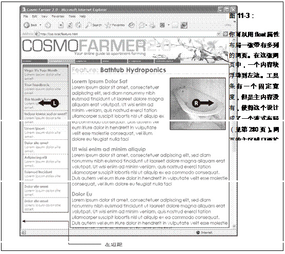 在图11-3中,列在左边工具条中的新闻项目被包围在一个<div>里面——<div id="news">,并且主内容在另一个div里面——<div id="main">。