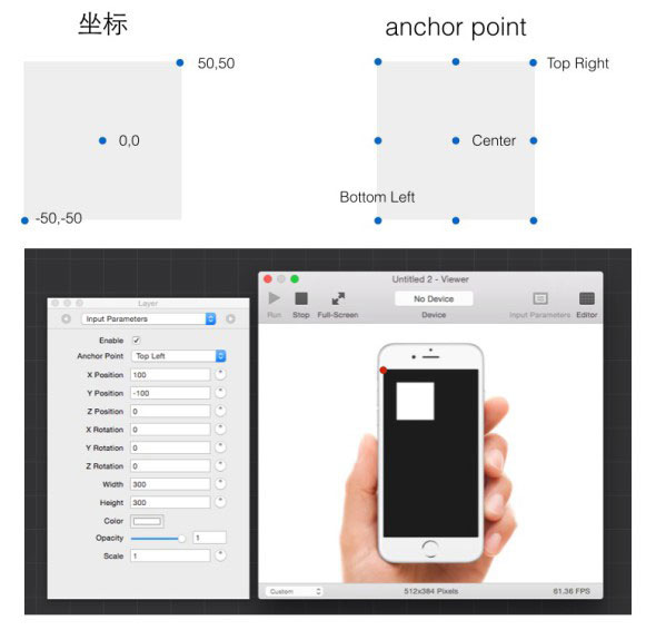 在Origami里,width、height、position都是以pixels为单位;opacity和scale是百分制,0-1分别对应0和100%。