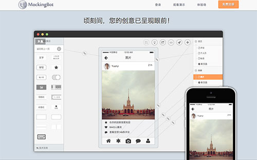 MocKingBot是国人开发的一款在线移动应用原型工具,非常适用于手机APP原型制作,用户只需在浏览器上就能轻松做出常用的交互效果出来,所有过程都是十分的简单。大家可以直接点击体验场来在线体验一下。