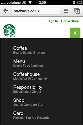 采用扩展菜单的星巴克响应式网站
