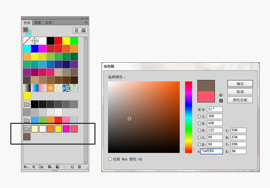 前面我们已经提到,波普风格的特点以用色大胆鲜艳见长。有经验的设计师会在一开始就为自己设置好相应的色板。让我们打开色板面板,新建一个新的颜色组。