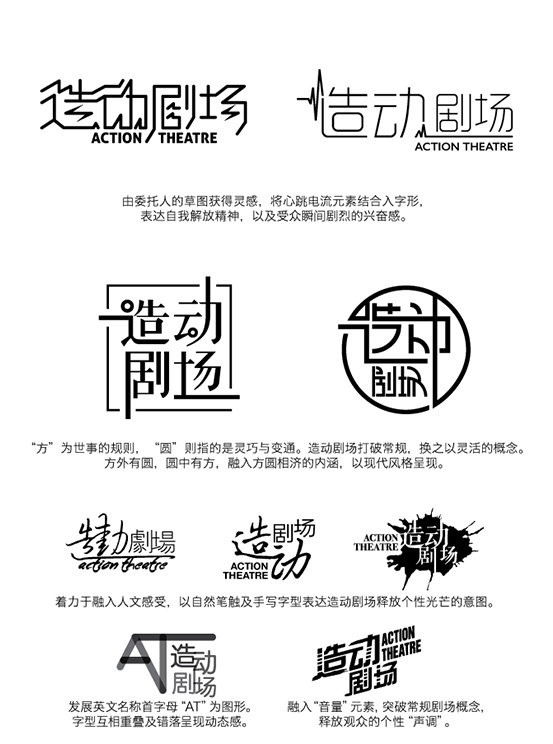 就以朵璞设计工作室为造动剧场设计Logo的过程为例,与大家分享个中点滴。这是个不可多得的正面案例,当然,在过程中有过瓶颈,但在共同探索后,最终找到突破口。客户对成果满意,设计师为找到解决方案而肯定了自我价值,皆大欢喜。