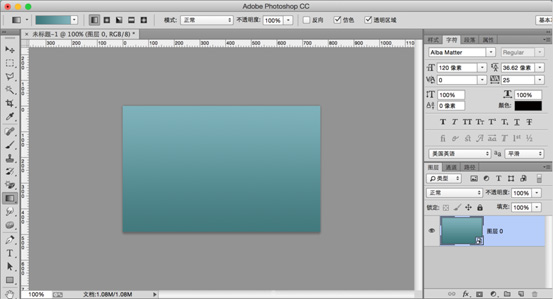 新建一个770*490的画布。设置前景色为#3f797d,背景色为#80b2bb。点击渐变工具,从画布底部向上拉。