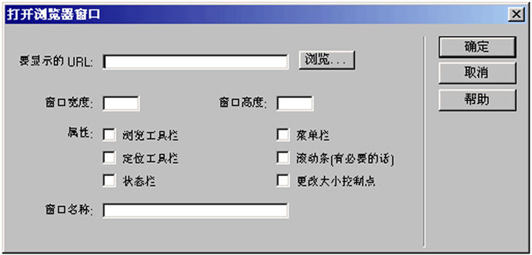 能,不用写一行代码。在“ behaviors ”面板使用内置的“ Open Browser Window ”脚本,设定页面、窗口大小、属性。如图:0