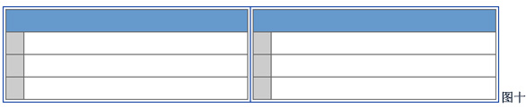 4、再修改第二步中的表格为单行双列,在每个单元格中都放置一个第一步中的表格,最后的表格外观如图十;