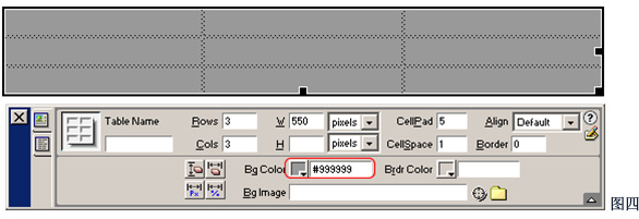 3、设置表格的背景色#999999,如图四;