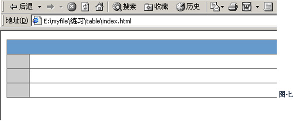 1、首先我们绘制一个表格,参照前面的例子设定此表格的CellPad和CellSpace的数值和颜色。具体效果如图七;