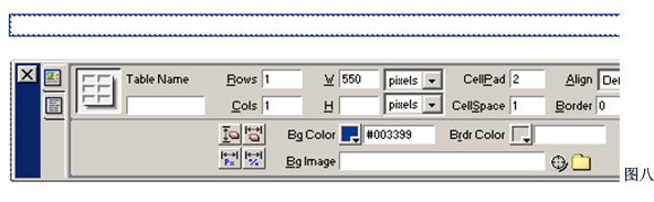 2、接下来绘制另一个单行单列的表格,设置CellPad=2,CellSpace=1具体参数如图八;