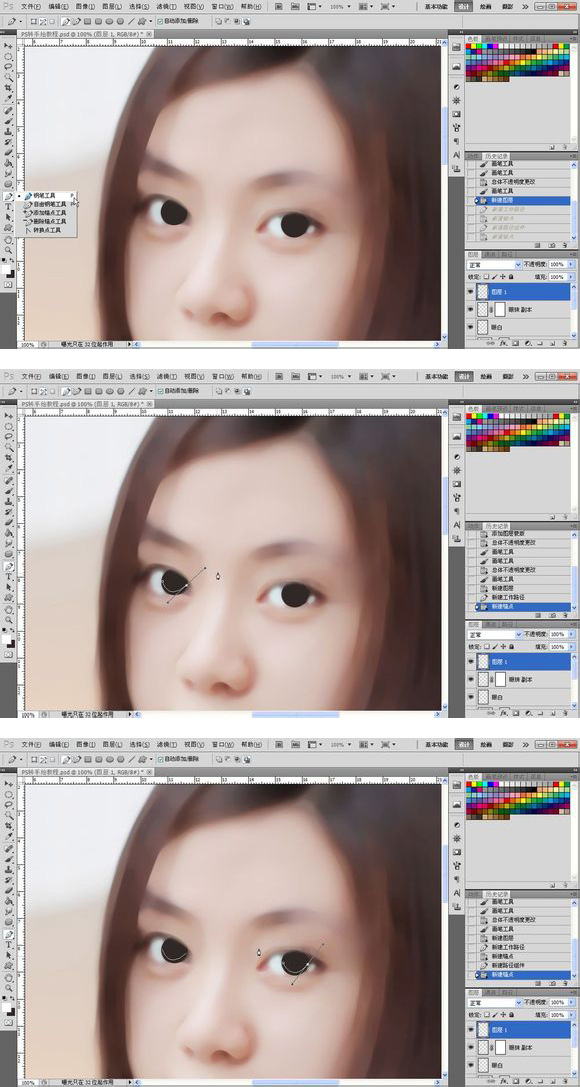 接着新建图层用【钢笔工具】勾出如图所示路径,两个眼睛都要勾如图所示
