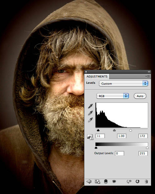 1、首先,让我们添加一个色阶调整层,加强整体的对比度,数值如下图。