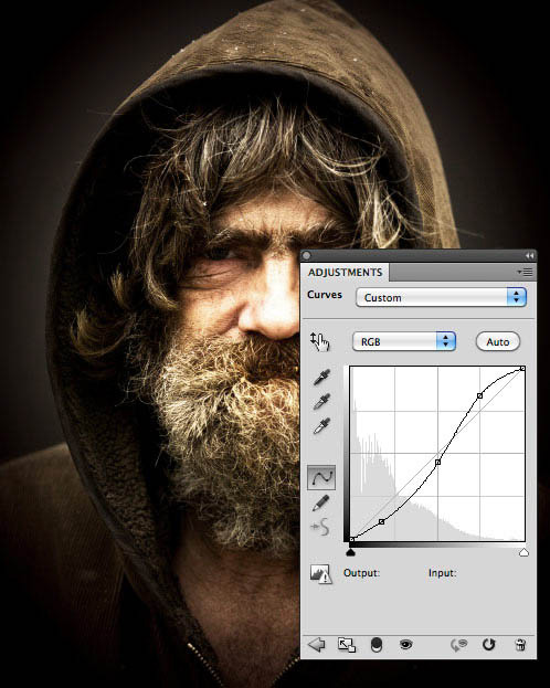 3、现在让我们添加一个曲线调整层,以进一步调整对比度和亮度。你需要添加三个节点调整,如下图。