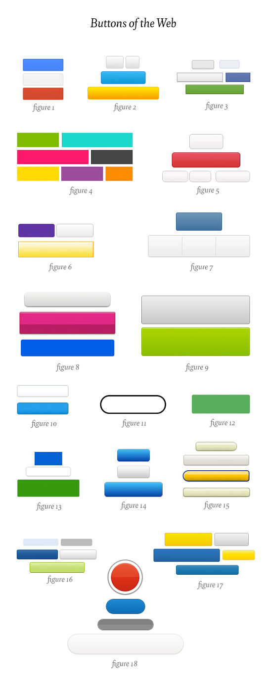 Youtube设计师Marc Hemeon就曾收集了18组流行网站或产品的按钮设计色彩,用来评估和调研色彩对于用户心理的影响: