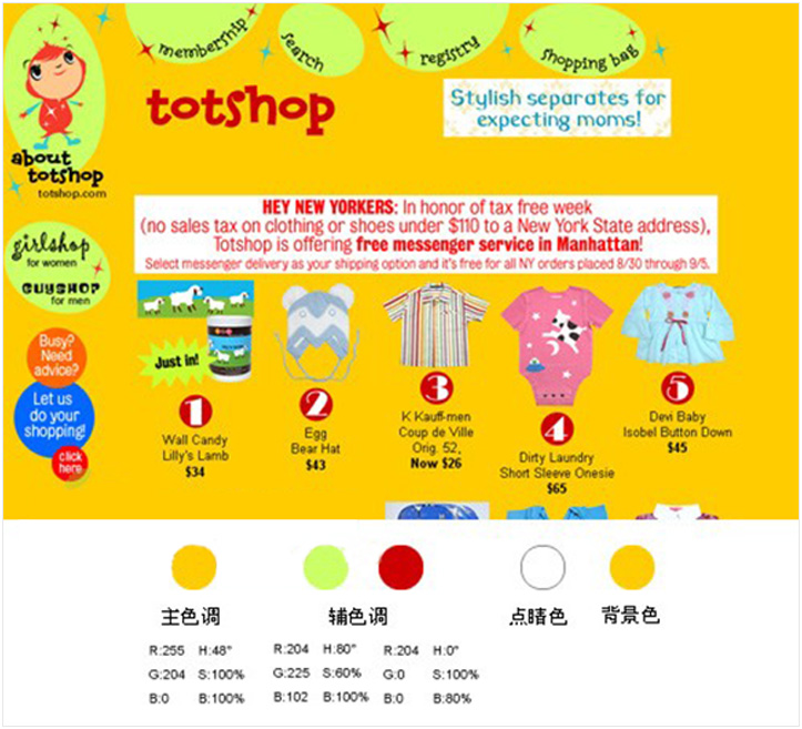 通常商品网站志在渲染热闹气氛,比较适合活泼跳跃、色彩绚丽的配色方案,但色彩的调和难度较大。